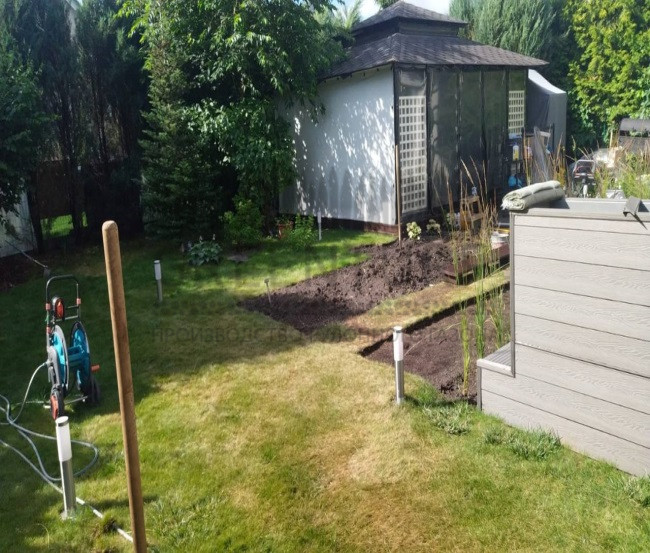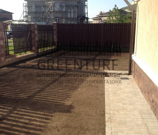 Перед укладкой рулонного газона тщательно готовим основание — рыхлим почву, вносим удобрения и средства от сорняков.
