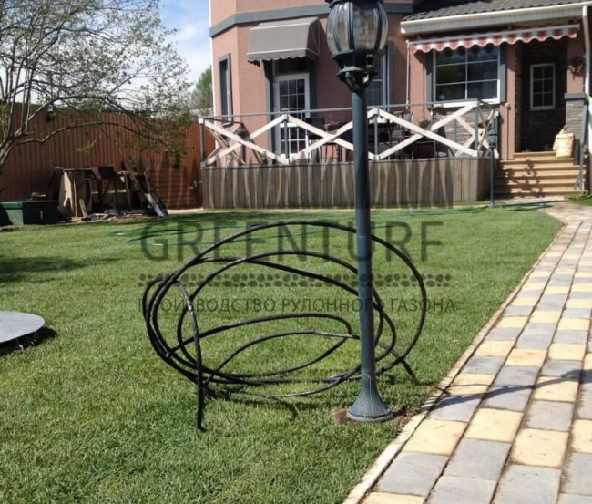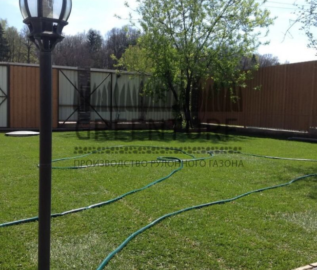 В первые 10-14 дней после укладки газон нужно поливать ежедневно, чтобы корни хорошо укоренились. Увлажнять следует рано утром или поздно вечером, чтобы избежать испарения влаги. Условия для почвы должны быть благоприятными. Увлажняйте ее в меру. После того как корни приживутся и газон начнет сливаться, можно сократить количество воды.