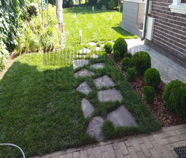 Не рекомендуется ходить по газону в первые 2-3 недели, чтобы не повредить молодой дерн.